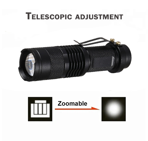 【 Flash in an instant 】 Promotional small flashlight, it is small and exquisite, as easy to hold. The main light can be zoomed in, combined with the COB floodlighting of the side lights, absolutely meeting the needs of different scenes. Very user-friendly design, easy to charge, USB interface can be charged anywhere.